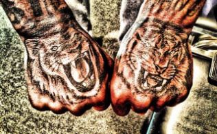 Tatuagem: As mãos do jogador têm rostos de feras tatuados nelas. Sua mão direita tem o rosto de um leão tatuado e sua mão esquerda tem o rosto de um tigre..