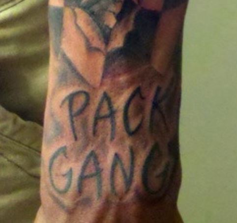 Tatuagem: O pulso esquerdo do jogador tem as palavras “PACK GANG” tatuadas nele.
