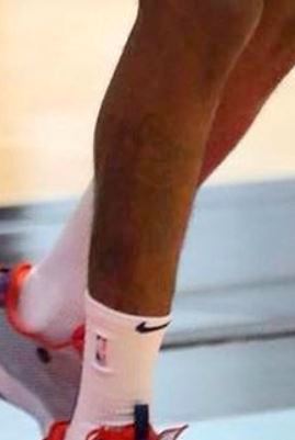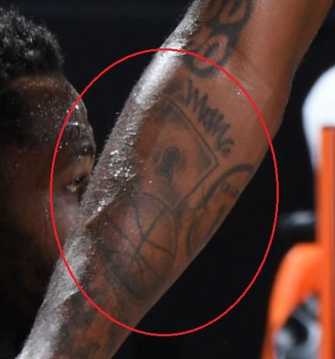 Tatuagem: A parte interna de seu antebraço direito tem uma tatuagem de uma fechadura com um buraco de fechadura. A palavra “mamãe” está tatuada acima da fechadura e há uma bola de basquete tatuada abaixo da fechadura.