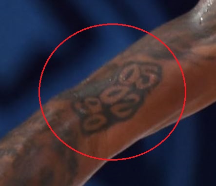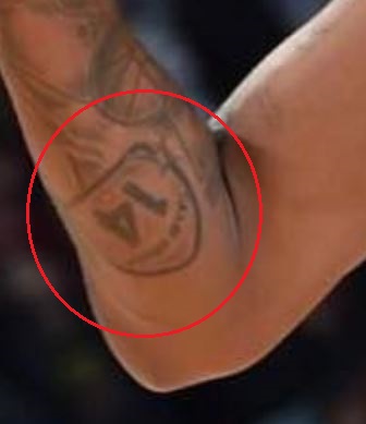 Significado: Os números em seu braço representam sua data de nascimento, “2 de maio de 1990”. O desenho ao lado da data se parece com a cabeça de um touro que representa o signo do zodíaco do jogador, Touro.