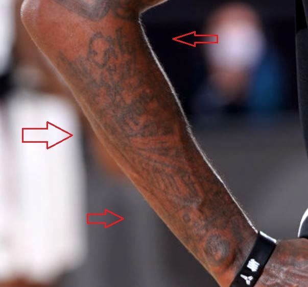 Tatuagem: A parte superior do antebraço direito do jogador é coberta por uma grande tatuagem de estrada cercada por diferentes placas de rua. As palavras “Cidade dos Sonhos” também estão tatuadas em seu antebraço.