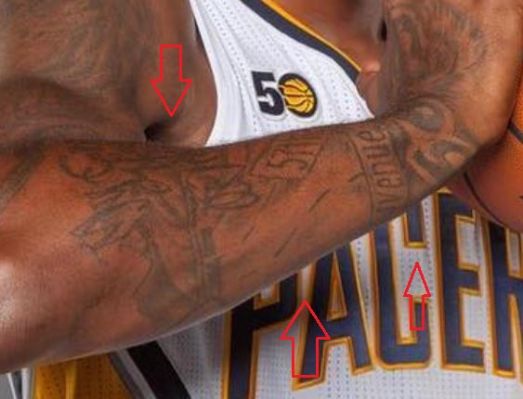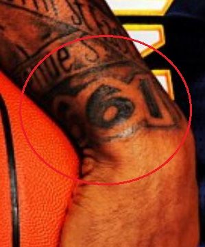Tatuagem: O ombro esquerdo do craque da NBA tem uma tatuagem do rosto de um cavaleiro. O cavaleiro é visto usando um velho grego, capacete espartano e tem escadas ao fundo com outros guerreiros em pé nas escadas.