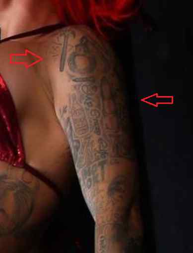 Significado: O braço esquerdo da modelo representa seu estilo de vida e todas as coisas que ela gosta.