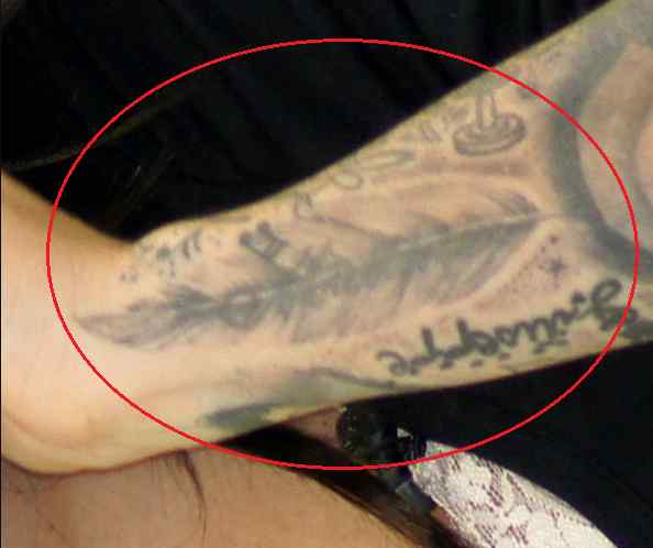 Tatuagem: Há uma pena tatuada na lateral de seu pulso esquerdo também.