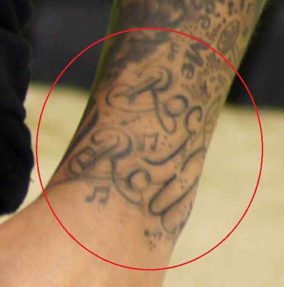 Tatuagem: As palavras “Rock n ‘Roll” estão tatuadas em seu pulso esquerdo.
