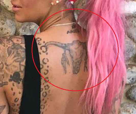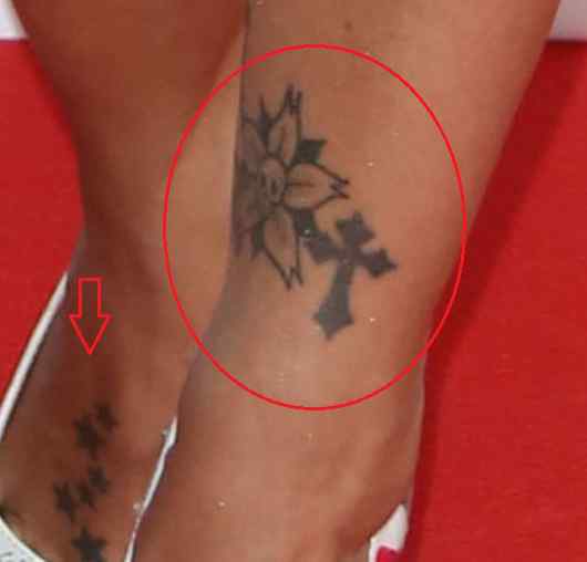 Significado: A tatuagem é uma tatuagem de homenagem a sua avó. A própria tatuagem contém as cinzas de sua avó também. Ela disse: “Mandei esmagar suas cinzas na tinta e tatuar em mim, e sinto como se ela estivesse comigo para sempre”.