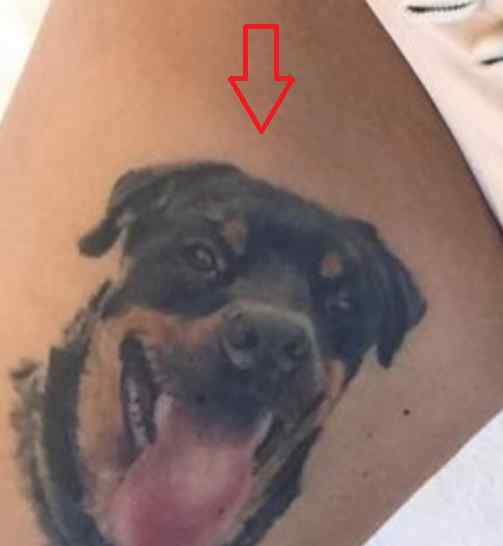 Significado: Jodie fez uma tatuagem de seu amado cachorro, Ralph. Esta tatuagem também cobre sua tatuagem anterior de Freddie Mercury.