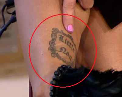 Tatuagem: Há um escudo tatuado na parte de trás de sua perna esquerda, logo acima do joelho. As palavras, “Little Nan” também estão escritas dentro dele.