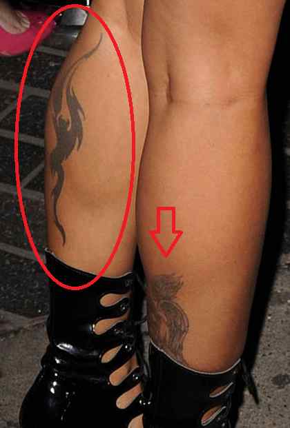 Tatuagem: Há uma tatuagem tribal em sua panturrilha esquerda e uma fada na parte de trás de sua perna direita. O desenho tribal representa o corpo de um demônio.