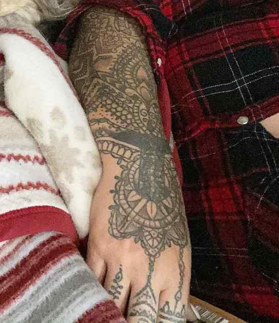 Tatuagem: A mão esquerda de Jodie está coberta por uma tatuagem do rosto de um lobo.