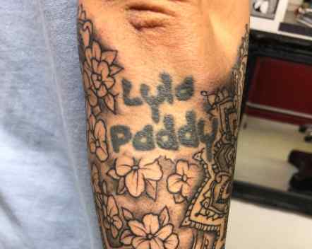 Tatuagem: Os nomes, “Lyla” e “Paddy”, estão tatuados na parte de trás do antebraço direito, logo abaixo do cotovelo.