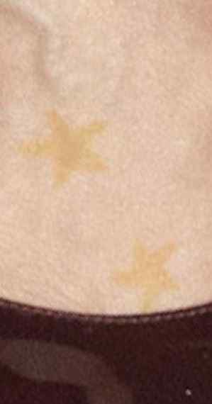 Tatuagem: Há duas estrelas tatuadas em seu pé em tinta amarela.