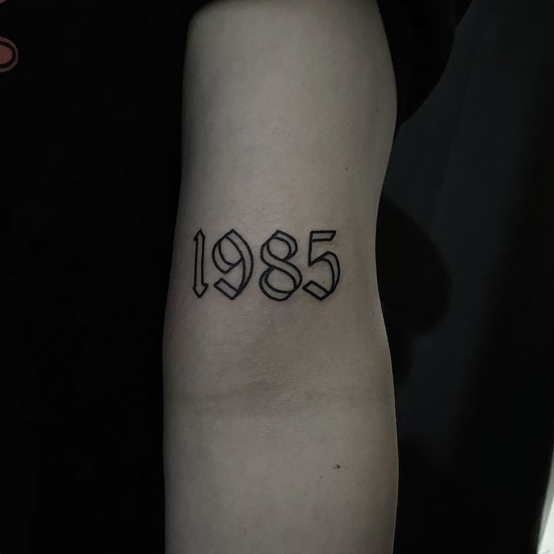 Mi piace molto il modo in cui puoi migliorare immediatamente il tuo tatuaggio dell’anno aggiungendo alcuni elementi personali o bizzarri. Proprio come questo tatuaggio in cui puoi aggiungere alcune parole al tuo disegno del tatuaggio dell’anno di nascita del 1985 come “est”. o “dal” ad esso per farlo sembrare più migliorato. Questo disegno del tatuaggio dell’anno di nascita del 1985 è piuttosto semplice con un carattere semplice e sembra super bello se realizzato sulla caviglia di chi lo indossa. Mi piace molto questo disegno del tatuaggio dell’anno di nascita del 1985 che è anche super minimalista senza molti abbellimenti.