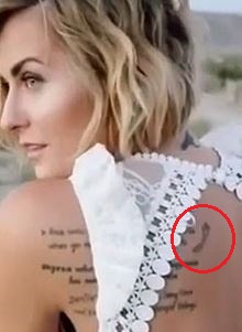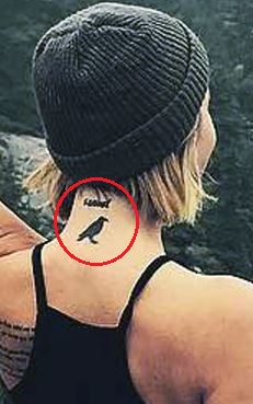 Significato: Scout è una grande fan della Sirenetta della Disney e si è fatta tatuare una forchetta sulla schiena per dimostrarlo. Nel film, Ariel si riferisce a una forchetta come a “Dinglehopper” poiché ha visto una cosa del genere per la prima volta e la usa per spazzolarsi i capelli..