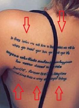 Significato: Scout ha ottenuto questo tatuaggio per rendere omaggio a uno dei suoi film preferiti di tutti i tempi, Dirty Dancing as Time of My Life è il titolo di una delle canzoni più famose del film.