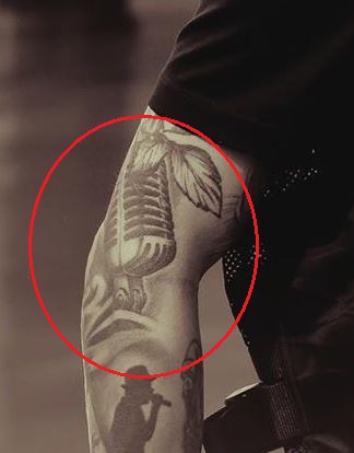 Tatuaggio: La parte superiore del suo braccio destro, appena sopra il gomito, contiene un tatuaggio di un microfono.
