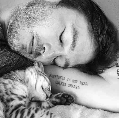 Tatuaggio: Le parole “LA FELICITÀ NON È REALE SE NON CONDIVISA” sono tatuate sul bicipite sinistro di Alexander.