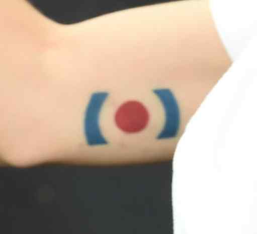 Tatuaggio: C’è un bersaglio rosso circondato da linee blu tatuate sul bicipite destro dell’attore.