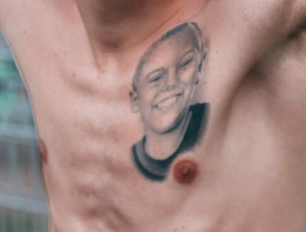 Tatuaggio: Il lato sinistro del petto del calciatore contiene un tatuaggio di un ritratto del volto di un ragazzo su di esso.