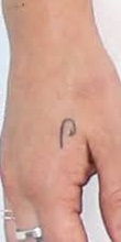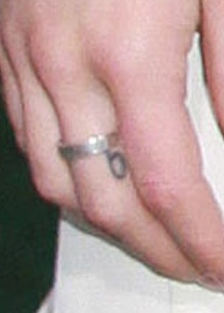 Tatuiruotė: Ant vidurinio aktorės dešinės rankos piršto yra mažai simbolių.