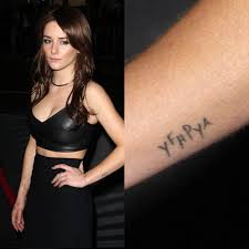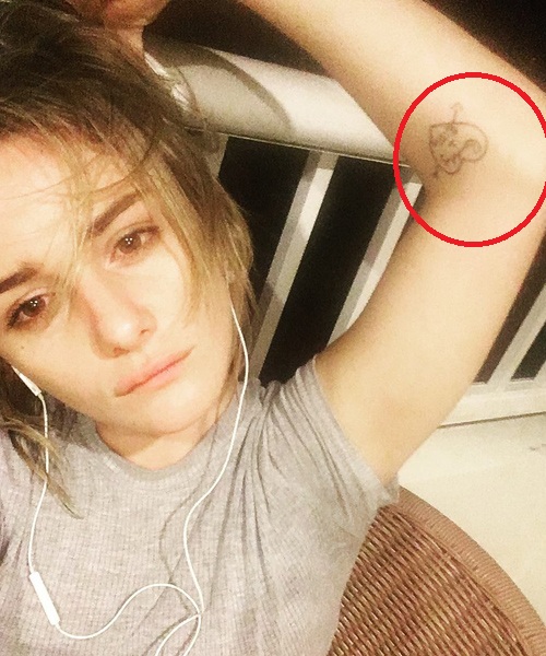 Tatuiruotė: Vidinės pusės aktorės dešinėje alkūnėje yra maža tatuiruotė iš dviejų mažų sukryžiuotų rankų