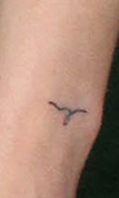 Tatuiruotė: Ant kairiojo šonkaulio narvelio yra kryžiaus tatuiruotė.
