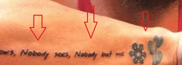 Tatuiruotė: Iš dešinės dilbio išorinės pusės ištatuiruota citata: „Niekas nežino, niekas nemato, niekas, išskyrus mane“, taip pat apskritas ašmenys ir kaktusas prie jo riešo.