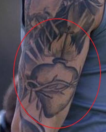 Tatuiruotė: Po Jėzaus veido tatuiruote dešinėje rankoje yra širdies tatuiruotė. Širdyje yra apvyniota erškėčių grandinė ir varva kraujas. Ant jo taip pat yra kryžius, apsuptas liepsnų.