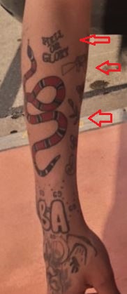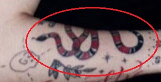 Reikšmė: Gyvatė ant rankos yra iš „Gucci“ logotipo, kuris yra vienas iš jo mėgstamiausių prekės ženklų.