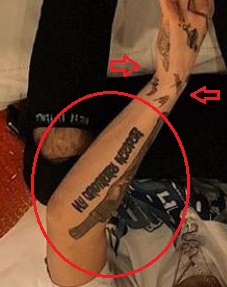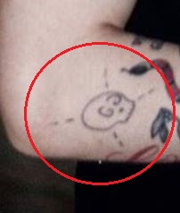 Tatuiruotė: Išorinėje dešiniojo dilbio pusėje, tiesiai po alkūne, yra kaukolės tatuiruotė. Taip pat yra dvi punktyrinės linijos, tatuiruotos X pavidalu už kaukolės.