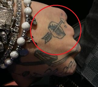 Reikšmė: Tatuiruotė yra automobilių prekės ženklo „Bentley“ logotipas, kuris yra dar vienas iš jo mėgstamiausių. Tatuiruotė turi dvigubą reikšmę, nes ji taip pat reiškia Lil Mosey tipo ritmo pavadinimą „Bentley“.