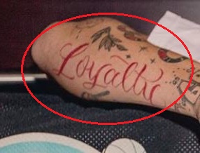 Tatuiruotė: Dešiniojo dilbio šone raudonu rašalu tatuiruotas žodis „Ištikimybė“. Taip pat yra vynmedis, pilnas lapų ir kelių uogų, tatuiruotas tiesiai virš žodžio ant dilbio.