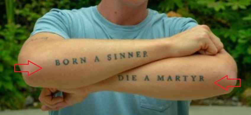 Reikšmė: Citata ant dilbio reiškia gilų supratimą apie tai, kuo dainininkas tiki. Tatuiruotę ant dilbio įkvėpė jo dėdė, kuris buvo nužudytas tarnaujant neramiam paaugliui Bažnyčios tarnystėje. Jo tėvai taip pat grojo sunkiojo metalo grupėse, o Mattas pasakė: „Aš ketinu kurti teigiamai veikiančias dainas, galiausiai tikiuosi palikti reikšmingą palikimą, kaip tai padarė Johnny Cash. Jūs žiūrite į muzikos pasaulį šiandien ir turite „Future“ su tokiomis dainomis kaip „Double Cups“ ir „Molly“, ir apie ką tai? Ar to gera klausytis viduriniosios klasės vaikams? Kokia žinia? Noriu gilintis “.