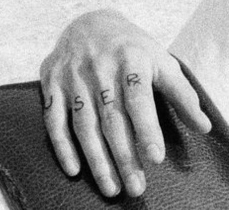 Tatuiruotė: Ant kiekvieno Mato dešinės rankos piršto yra ištatuiruotos raidės, kuriose parašytas žodis „USER X“