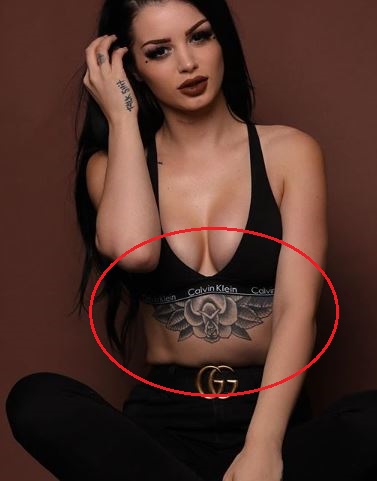 Tatuiruotė: Jos skrandžio viduryje yra gėlės tatuiruotė. Taip pat aplink gėlę yra lapų, kurie užbaigia jos skrandžio tatuiruotę.