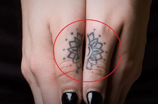 Tatuiruotė: Ant abiejų jos nykščių yra ištatuiruotas mandalos dizainas, kurį galima pamatyti juos sujungus.