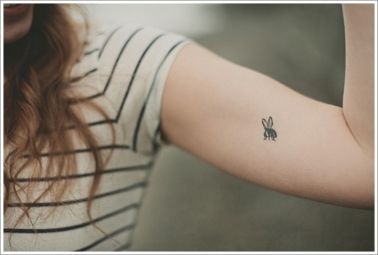 Ta tetovaža čebel je zelo lepa, saj je dodana z drugačnim vzorcem, kot so pikčaste oblike, zaradi česar je ta oblika videti zelo moderna. Takšni slogi so zelo moderni in jih ustvarja veliko ljudi. Dodan je tudi srčkan zajček in nekaj neverjetnih cvetov, zaradi katerih je ta tattoo čebela ali čmrljev tatoo precej neverjeten.