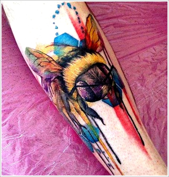 Ta tetovaža medonosne čebele ali čmrlja je super neverjetna. To je zelo kreativno oblikovanje tetovaže medene čebele ali čmrlja, ki ima veliko stilov, ki izgledajo neverjetno. Združen je z neverjetnimi slogi, ki izgledajo precej super. Celotna tema oblikovanja tetovaže medene čebele ali čmrlja je zelo modernistična in nekoliko abstraktna. Všeč mi je uporaba barve pri oblikovanju tetovaže medonosne čebele ali čmrlja.