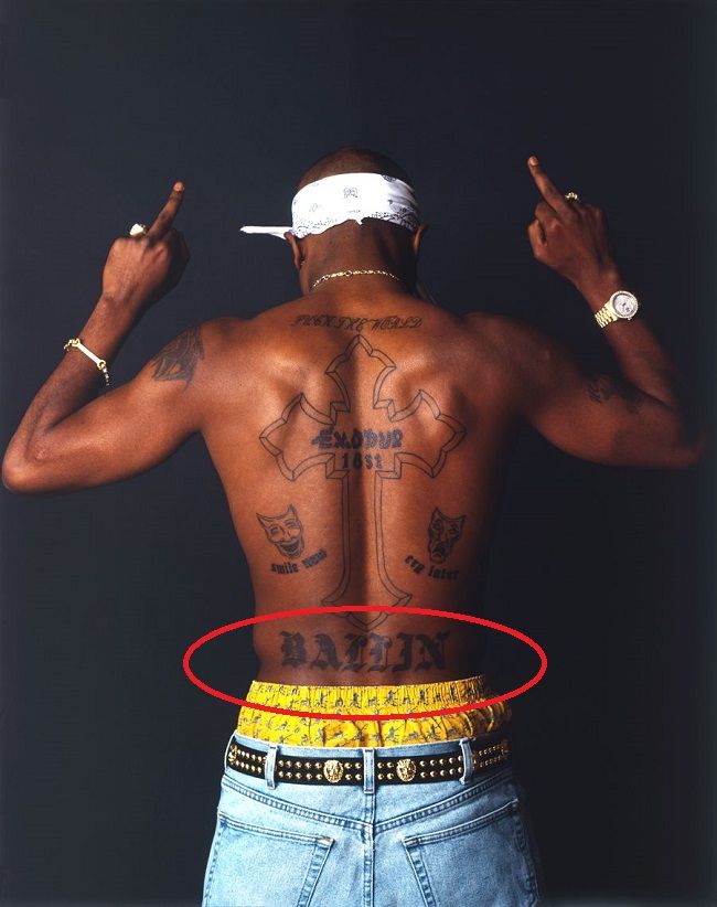 Pomen: Ballin je beseda, ki se pogosto uporablja in sliši kot sleng, zlasti v črni skupnosti. Izvira iz izraza “imeti žogo”. Tupac je imel to tetovažo na spodnjem delu hrbta. Ta tetovaža je deseta skladba Str8 Ballin iz njegovega albuma Thug Life: letnik 1 (1994), v katerem je rapal,