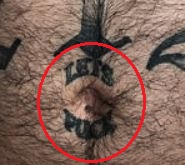 Tetovaža: Područje iznad njegovog pupka sadržavalo je riječ “Ajmo”, a područje ispod nje sadržalo je riječ “jebi se” tetovirano na njoj.