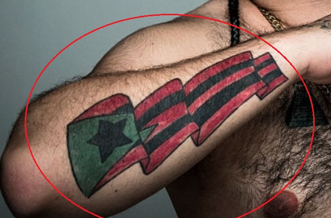 Tetovaža: Donja strana desne podlaktice sadržavala je tetovažu zastave.