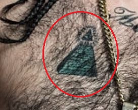Tetovaža: Raperova desna peca sadržavala je tetovažu piramide na vrhu s trokutastim blokom, uzdignutu iznad ostatka piramide. Unutar plutajućeg trokuta također je tetovirano oko s zrakama svjetlosti koje emitiraju iz njega.