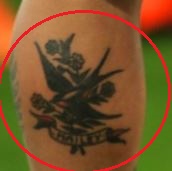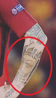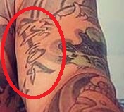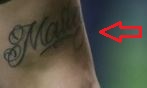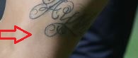 Tetovaža: Lijeva nadlaktica nogometaša sadrži naziv, “AYSHA” tetovirano na njoj okomito uz glavu guštera.