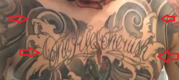 Tetovaža: Riječi “One Life One Wish” tetovirane su na grudima Belgijanaca ispred pozadine kružnog dizajna i oblaka. Zmijska glava može se vidjeti i na sredini njegovih prsa.