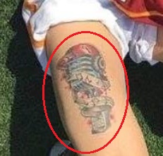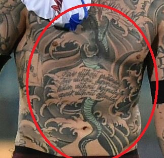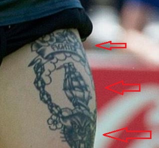 Tetovaža: Lijevo bedro nogometaša sadrži tetovažu broda koji plovi zajedno s lancem koji okružuje brod u kružnom obliku. Ispod broda je lice režajuće pantere, a na vrhu lanca tetoviran je transparent s natpisom “FIGHTER”.