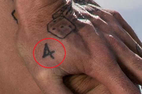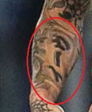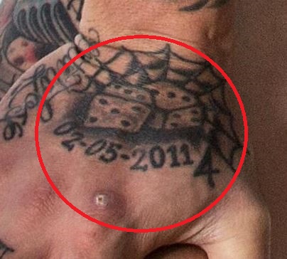 Tetovaža: I na gornjoj strani njegove lijeve ruke nalazi se tetovaža para kockica, na objema je prikazan broj 3.