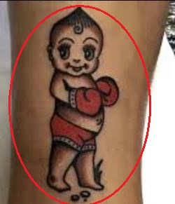 Tetovaža: Unutarnja strana njegove lijeve potkoljenice sadrži tetovažu malog crtanog klinca koji nosi crvene boksačke rukavice.