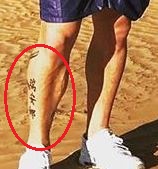 Tetovaža: Vanjska strana desne potkoljenice sadrži tri kineska slova tetovirana na njoj.