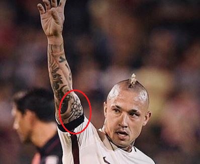Značenje: Tetovaža predstavlja samog Radju u njegovom crvenom dresu, AS Rome, a transparent predstavlja nadimak koji je dobio, Ninja.
