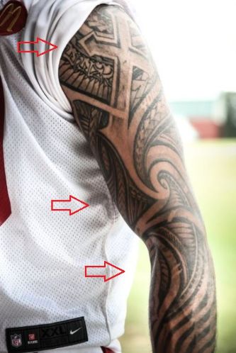 Tetovaža: Lijevo rame i ruka igrača prekriveni su velikim plemenskim dizajnom tetovaža koji sadrži različite dizajne i također sadrži križ.
